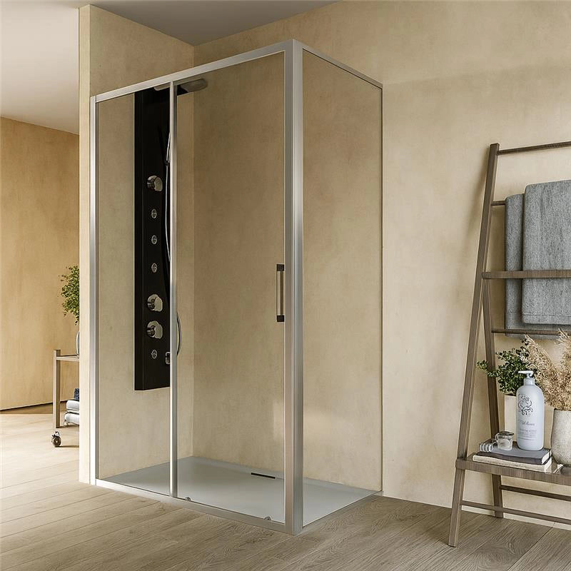 Il profilo in alluminio cromato aggiunge un tocco di stile e raffinatezza, rendendo il box doccia un complemento perfetto per bagni moderni. La chiusura magnetica garantisce una sigillatura ermetica dell'anta, prevenendo fuoriuscite d'acqua. L'anta scorrevole si muove con fluidità, assicurando un ingresso comodo e agevole, anche in spazi più stretti.