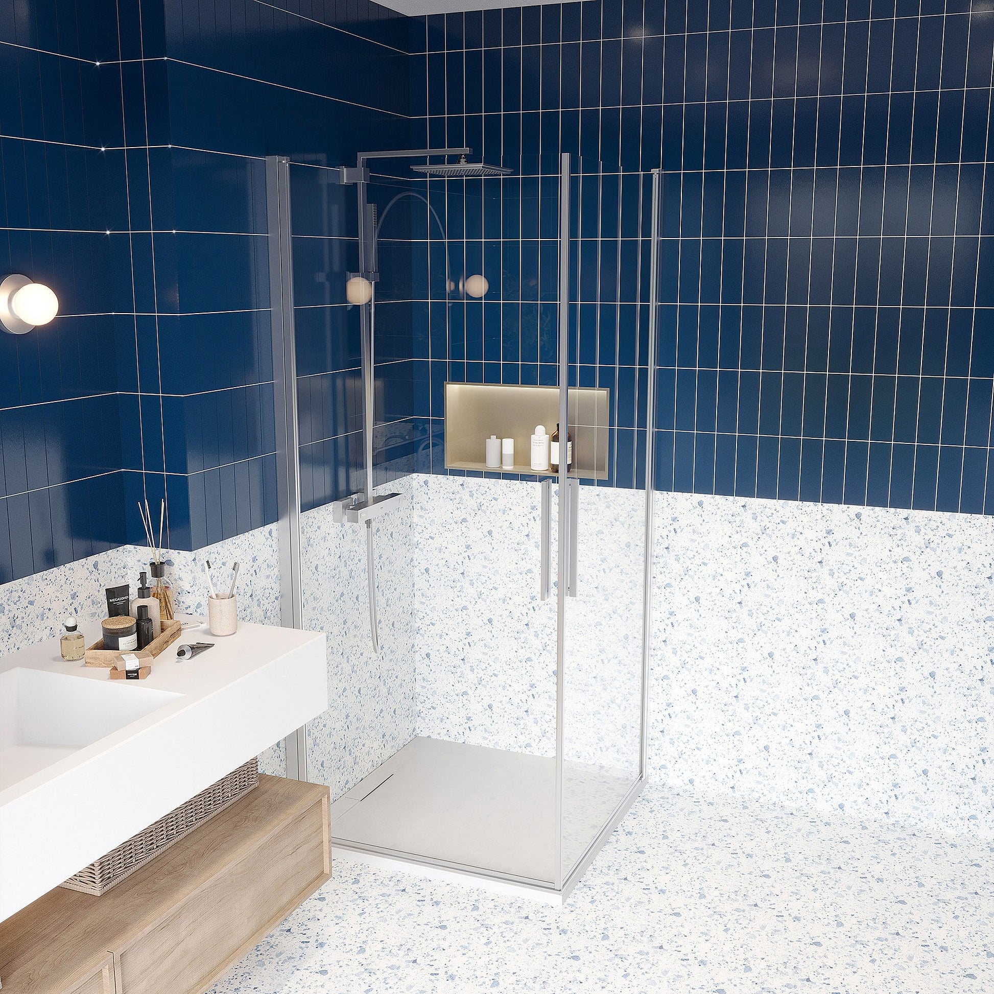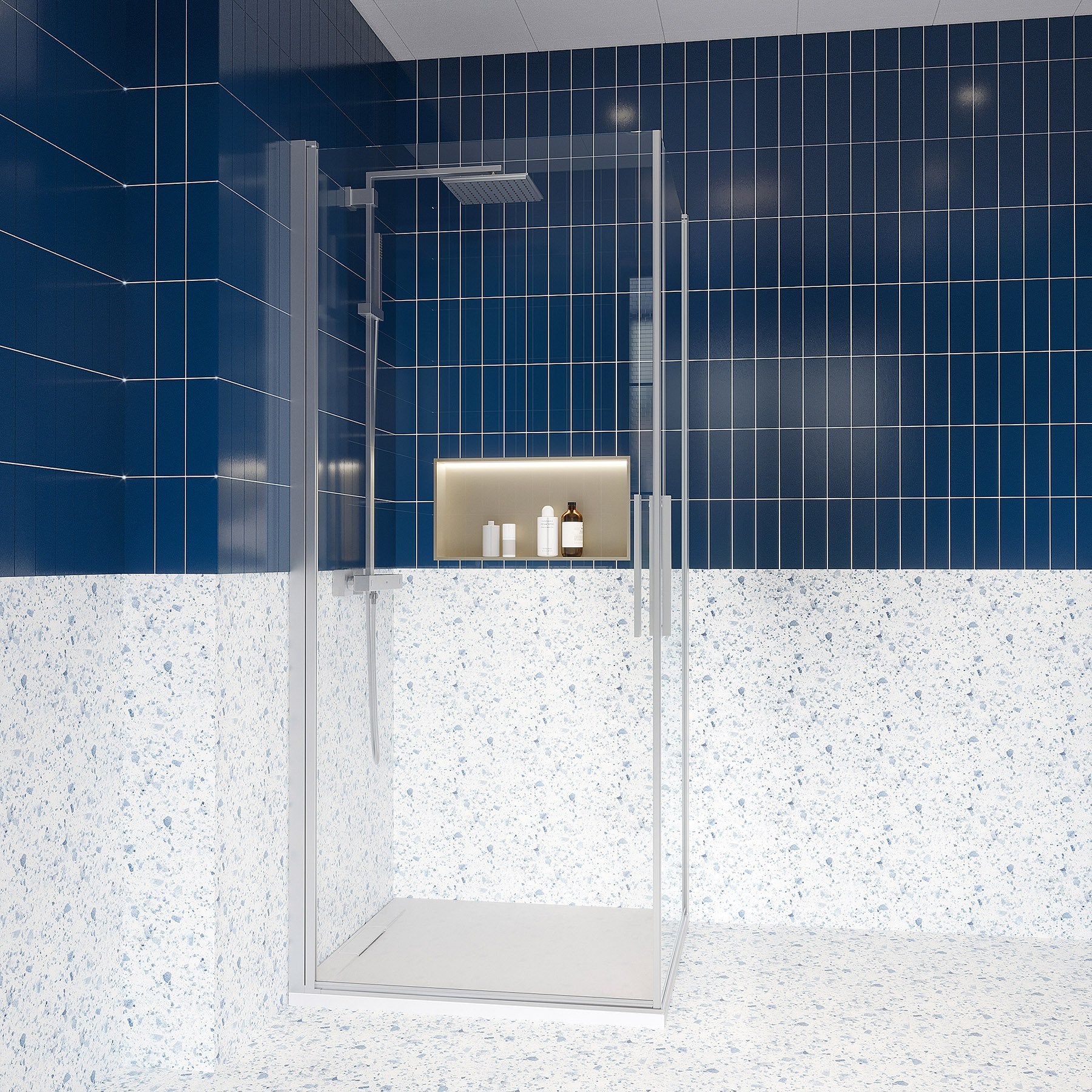 Realizzato in vetro temperato trasparente da 6 mm, garantisce sicurezza e resistenza, rendendolo ideale per l’uso quotidiano. Il vetro temperato non solo è durevole, ma aggiunge anche luminosità e leggerezza visiva al bagno, creando un ambiente arioso e contemporaneo. La configurazione angolare con doppio battente offre un accesso comodo e spazioso, migliorando la praticità.
