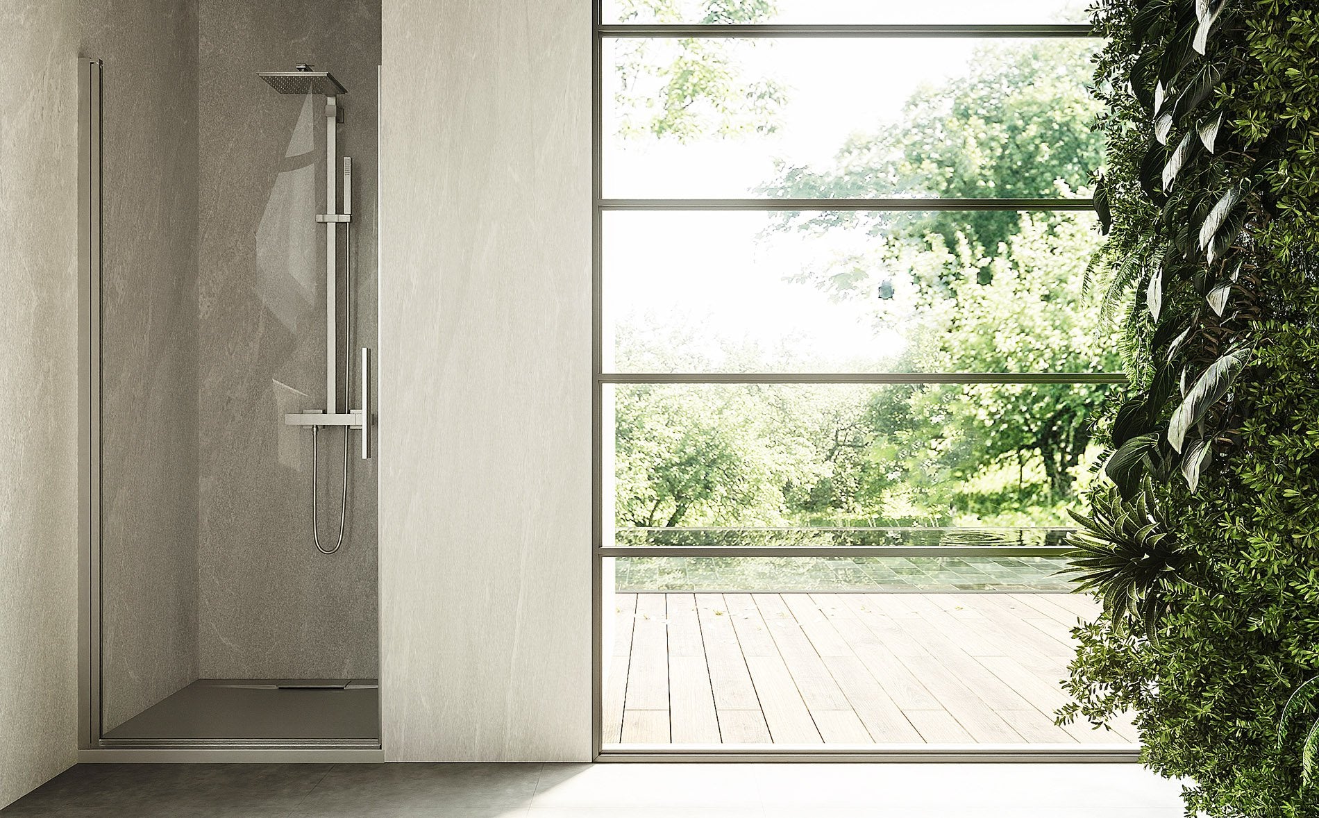 Nicchia doccia 90 cm battente in vetro temperato 6 mm 195 H cromo Linje