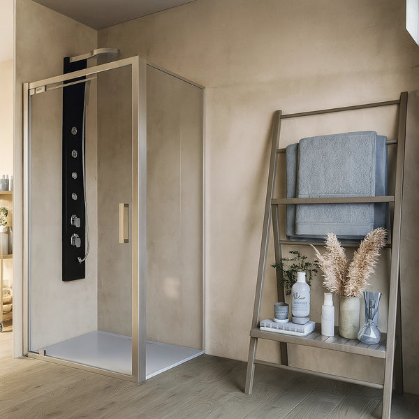 Il profilo in alluminio cromato conferisce al box doccia un tocco di eleganza e modernità, rendendolo adatto a bagni dallo stile contemporaneo. L'anta battente consente un’apertura agevole e spaziosa, ideale per chi cerca praticità e comodità nell’uso quotidiano della doccia. La chiusura magnetica garantisce una perfetta tenuta dell’acqua, evitando fuoriuscite e proteggendo il pavimento.