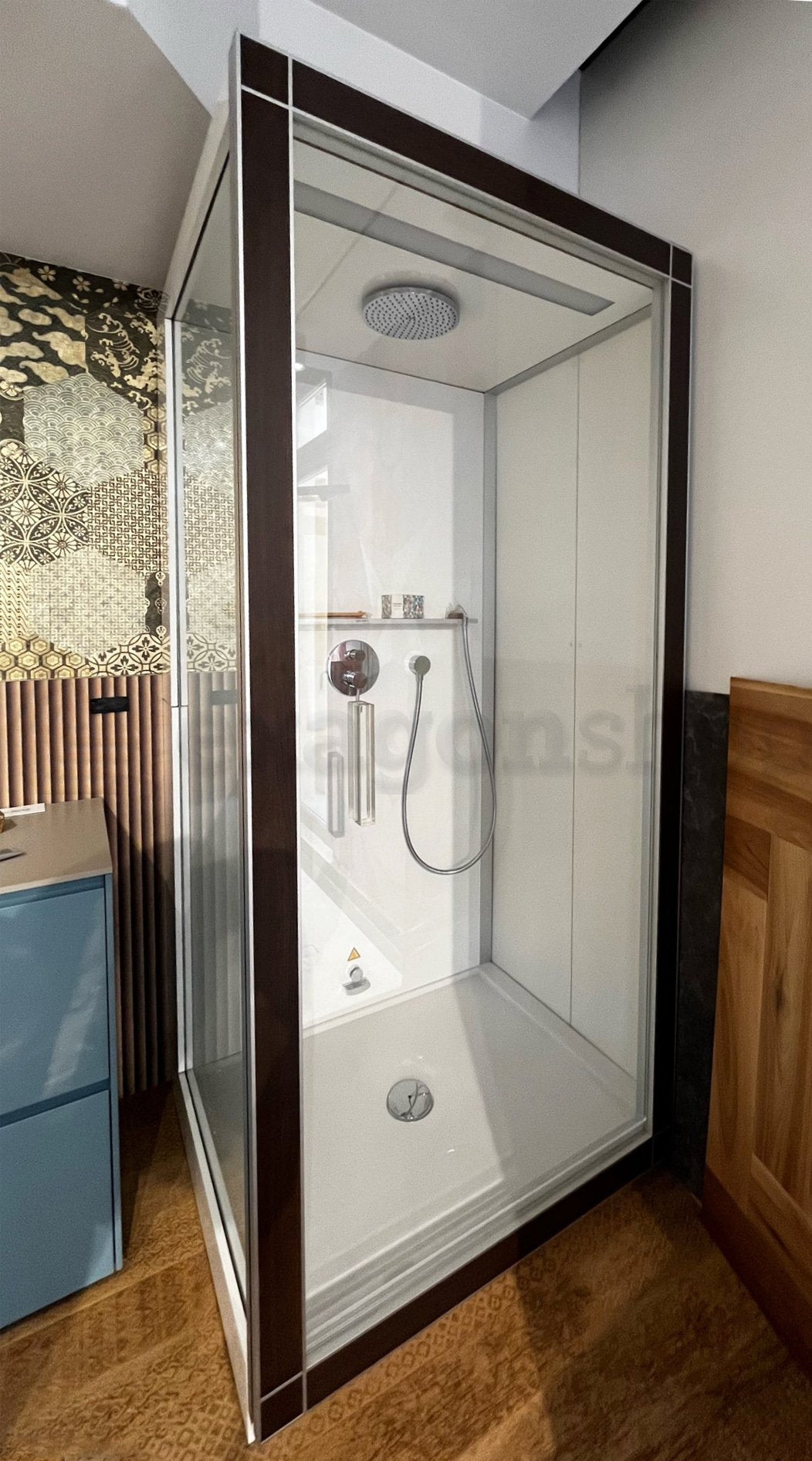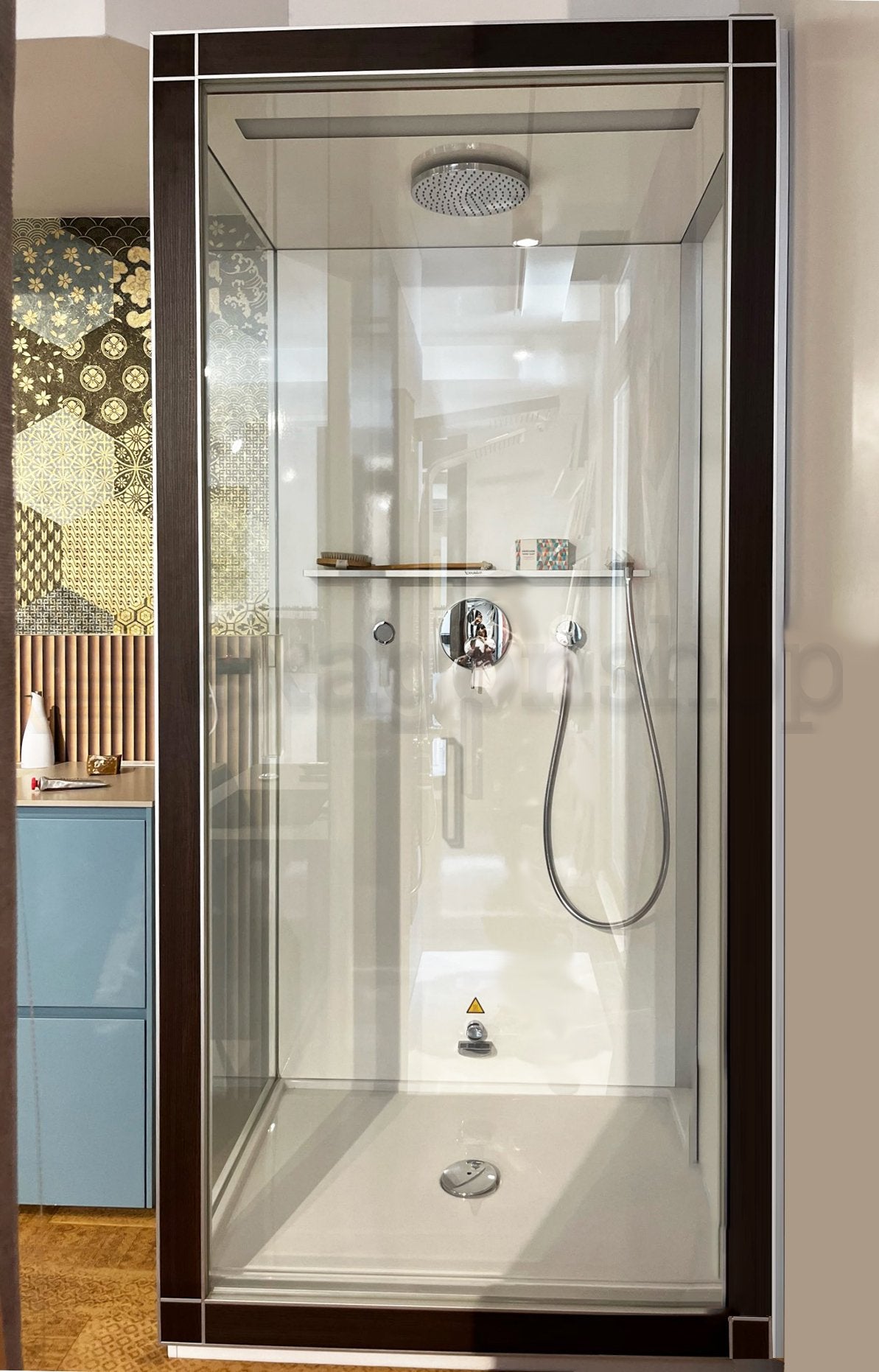 La cabina e bagno turco St.Trop è caratterizzata da un design elegante e raffinato che si adatta perfettamente a qualsiasi ambiente bagno. La finitura in castagno scuro aggiunge un tocco di calore e naturalezza, creando un'atmosfera accogliente e lussuosa.