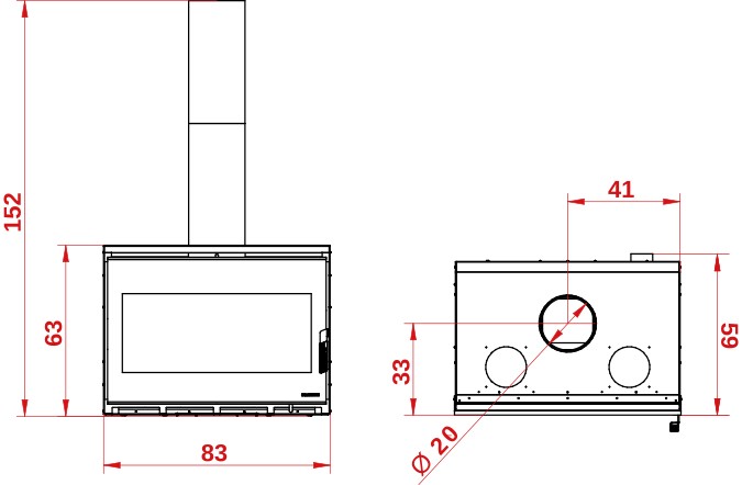 • attraverso i kit optional permette la ventilazione frontale oppure la canalizzazione dell’aria calda in altri ambienti.
