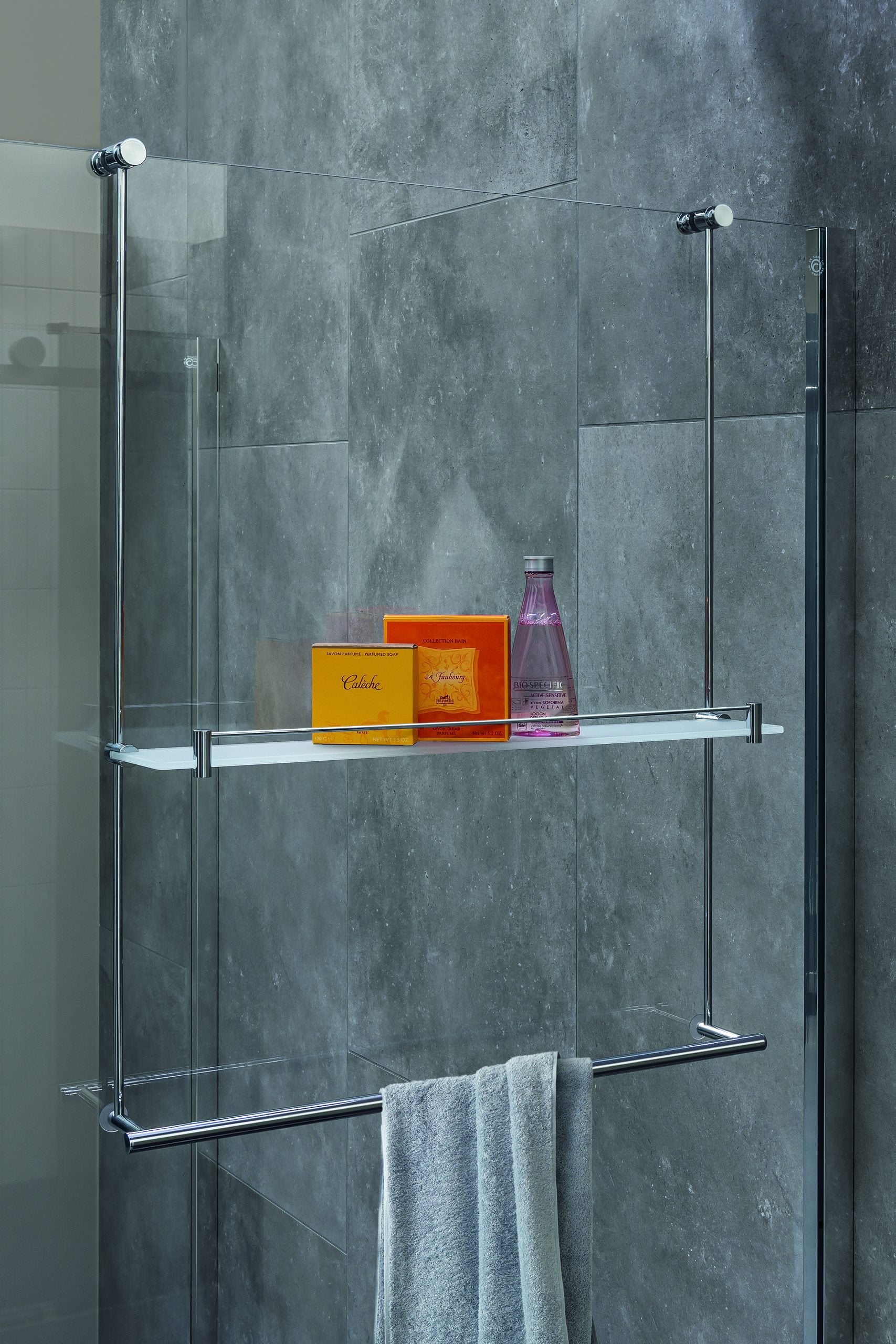 Cavalletto universale per box doccia con mensola e portasalviette cromo B9659 Colombo Design