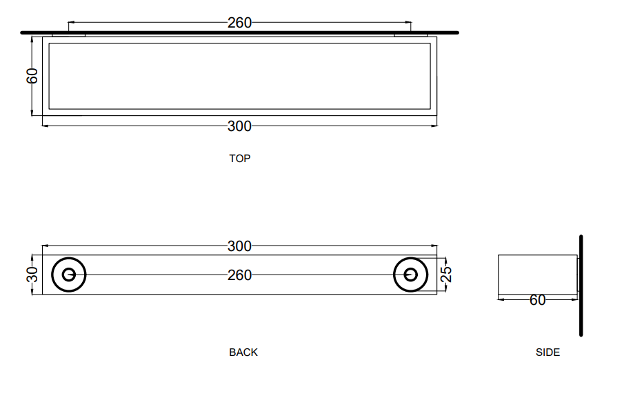 Cielo barra porta asciugamani 30 cm rettangolare in acciaio verniciato nero matt