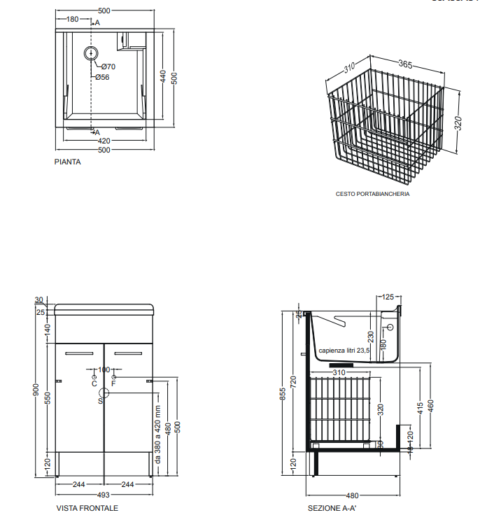 Dotato di un cesto portabiancheria estraibile, ti permette di raccogliere e trasportare comodamente la biancheria da lavare. Inoltre, l'asse strofinatoio double face in legno ti offre un comodo supporto per le attività di lavaggio e stiro.
