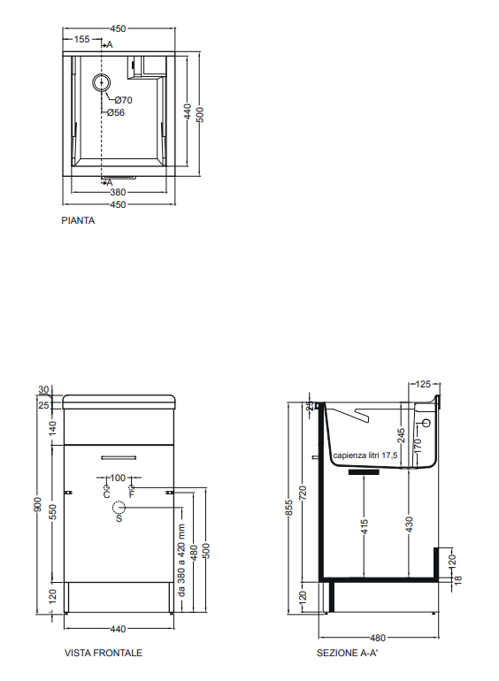 Il mobile lavatoio è dotato di un'anta con apertura a sinistra, che permette un facile accesso agli interni. Questo ti consente di organizzare gli oggetti all'interno in modo ordinato e accessibile.
