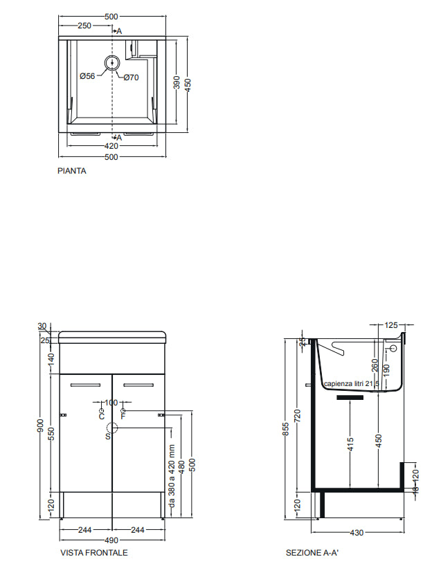 Le dimensioni compatte del mobile lavatoio lo rendono ideale per spazi più piccoli, senza compromettere la funzionalità. Può essere posizionato a parete o su una base, offrendo flessibilità nella disposizione del tuo ambiente di lavaggio.