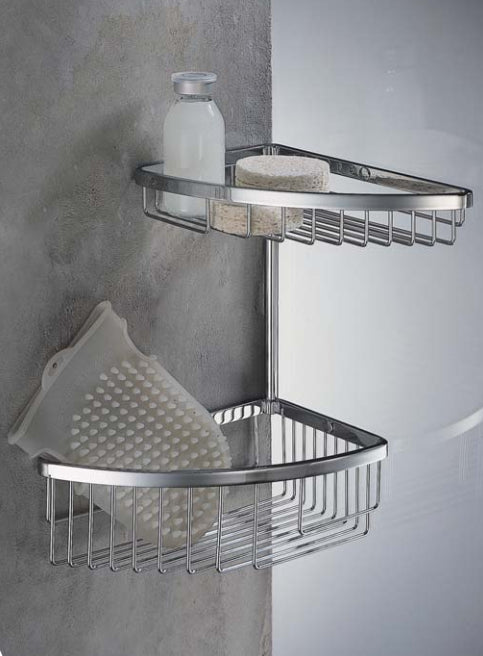 Questa griglia angolare doppia è la soluzione perfetta per l'organizzazione dello spazio nella tua vasca da bagno o nel box doccia. Realizzata in ottone cromato di alta qualità, questa griglia è progettata per durare nel tempo e resistere alla corrosione. Il suo design funzionale e moderno ti permette di tenere a portata di mano i tuoi prodotti da bagno preferiti, mantenendo il tuo bagno sempre in ordine.