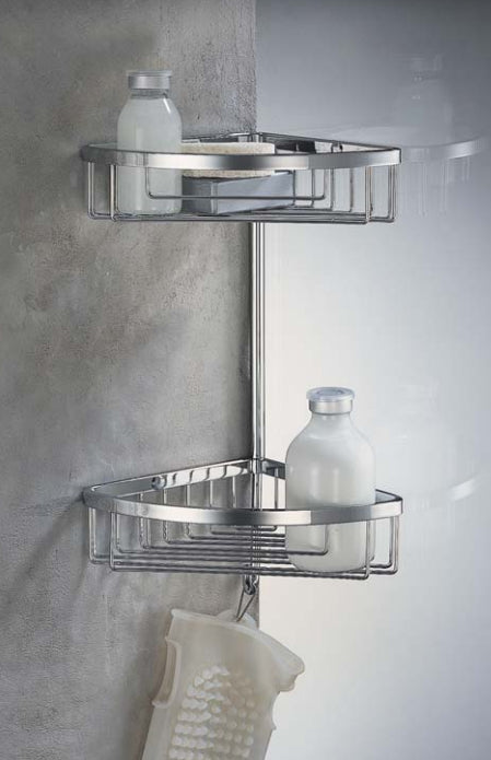 Colombo b9617 cestello portaoggetti angolare doppio per vasca e doccia con Gancio Cromo