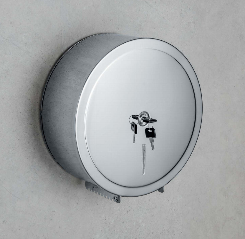 Serratura di Sicurezza: È dotato di una serratura che previene accessi non autorizzati e garantisce la sicurezza della carta igienica all'interno del distributore.