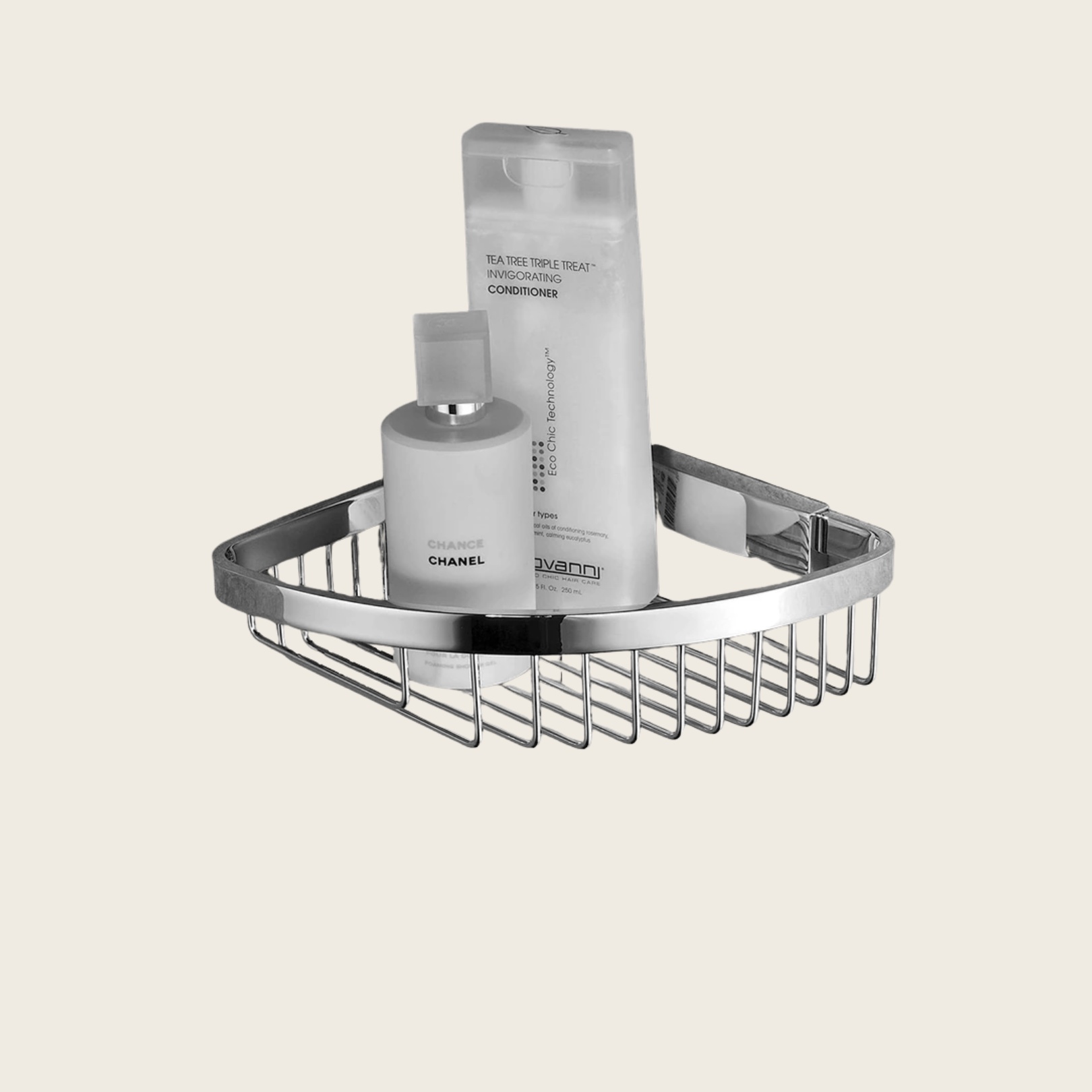 Design Elegante: La griglia portaoggetti ha un design angolare che si adatta perfettamente agli angoli del box doccia, ottimizzando lo spazio disponibile. Il cromo lucido offre un aspetto raffinato e moderno.