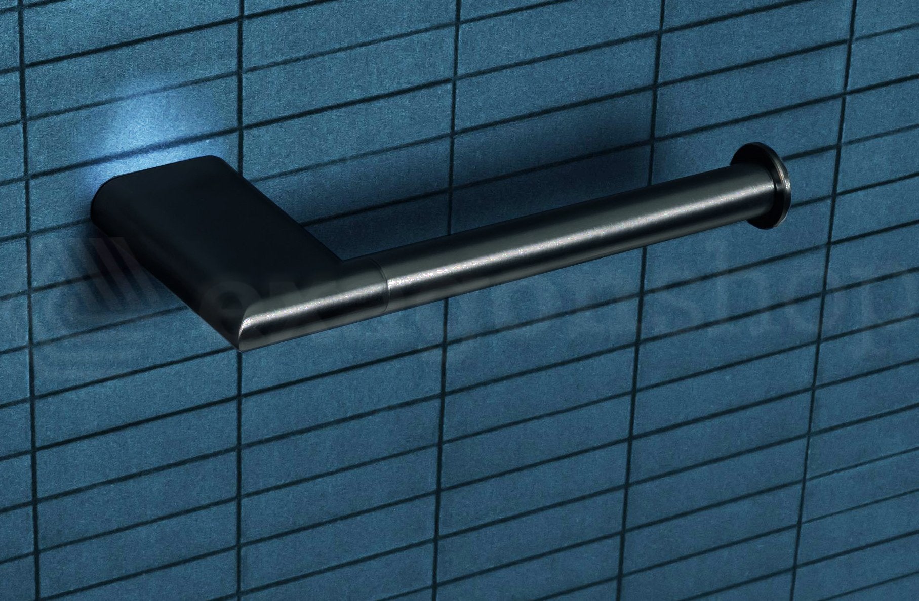 La finitura nero opaco conferisce al porta rotolo un aspetto moderno ed accattivante, aggiungendo un tocco di raffinatezza e originalità all'ambiente.