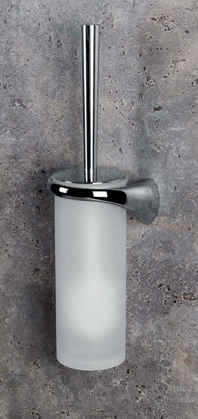 Design Raffinato: Il porta scopino presenta un design contemporaneo con una base in vetro acidato naturale e dettagli cromati. Questa combinazione di materiali conferisce all'accessorio un aspetto sofisticato che si integra perfettamente con qualsiasi stile di arredamento bagno.