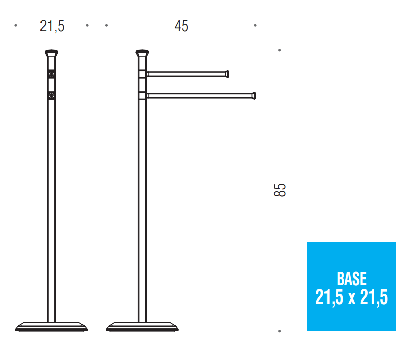 La sua struttura a piantana e il colore cromo gli conferiscono un design moderno ed elegante che si integra perfettamente in qualsiasi tipo di arredamento. Inoltre, il portasciugamani è doppio e snodato, offrendo una soluzione pratica ed efficiente per il bagno.
