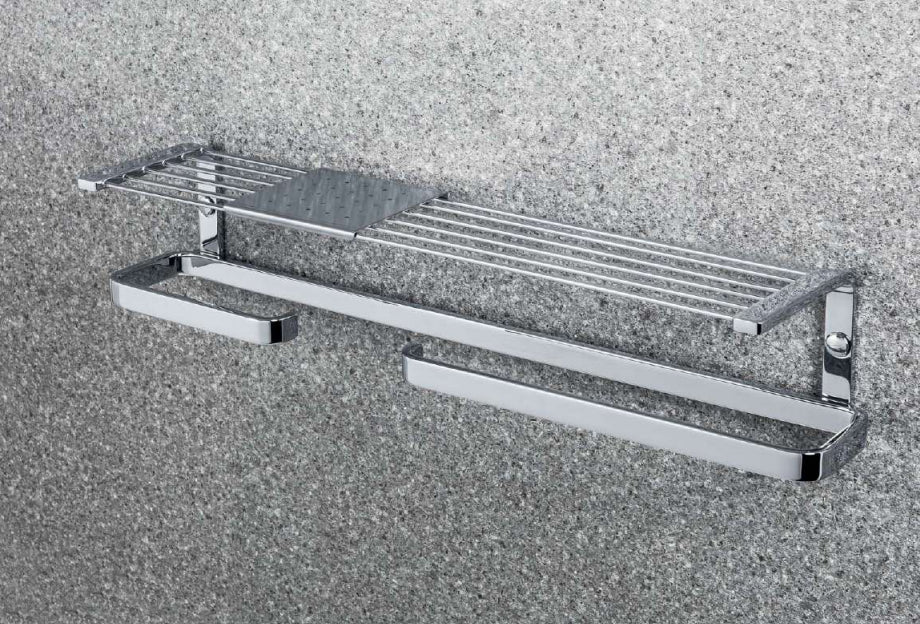 Finitura Cromata: La finitura cromata dona un aspetto elegante e moderno alla mensola, che si abbina bene a qualsiasi stile di arredamento bagno.
