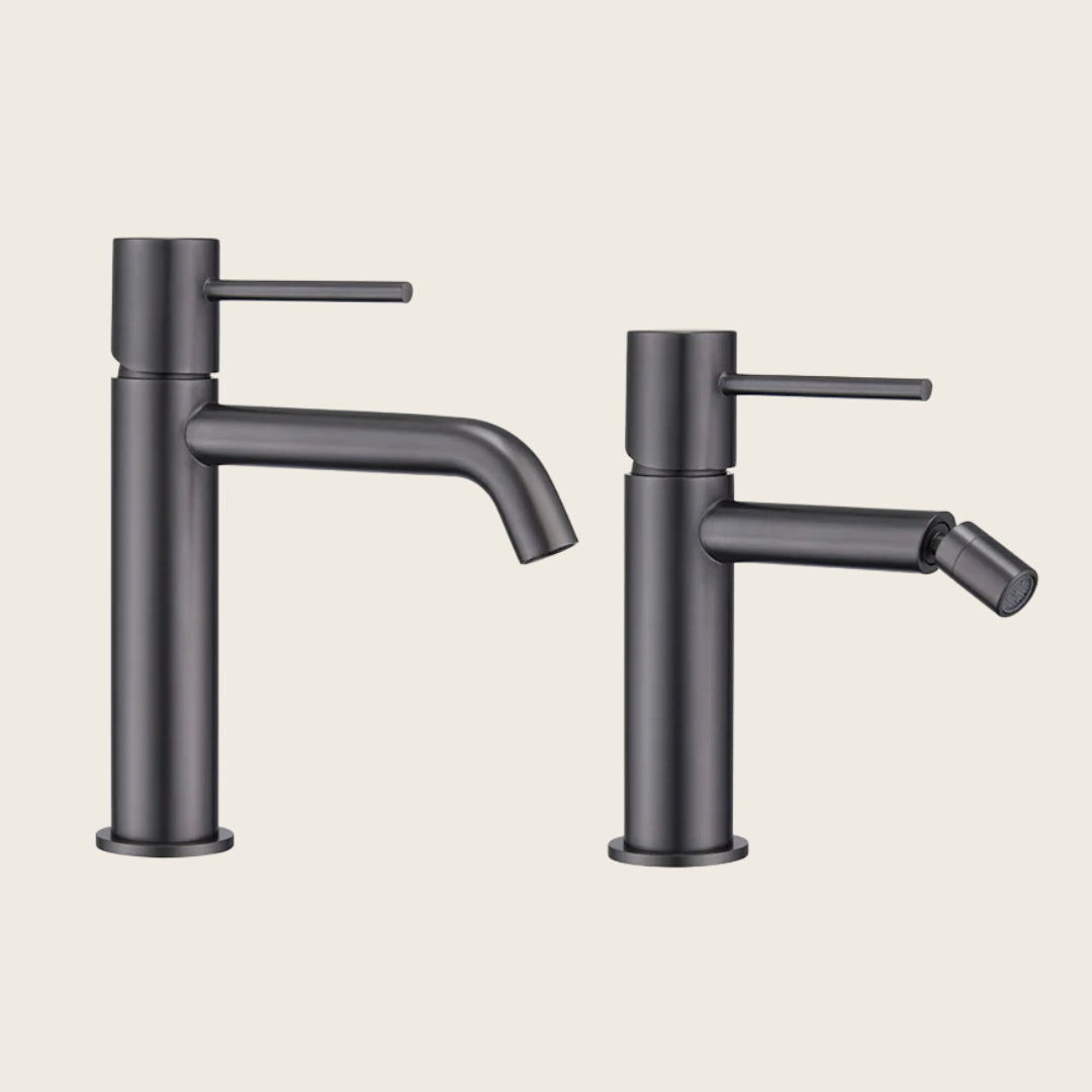 Caratterizzati da una finitura in ottone nero canna di fucile, questi rubinetti conferiscono un tocco di modernità e raffinatezza al tuo lavabo e bidet, creando un ambiente dallo stile distintivo nel tuo bagno.