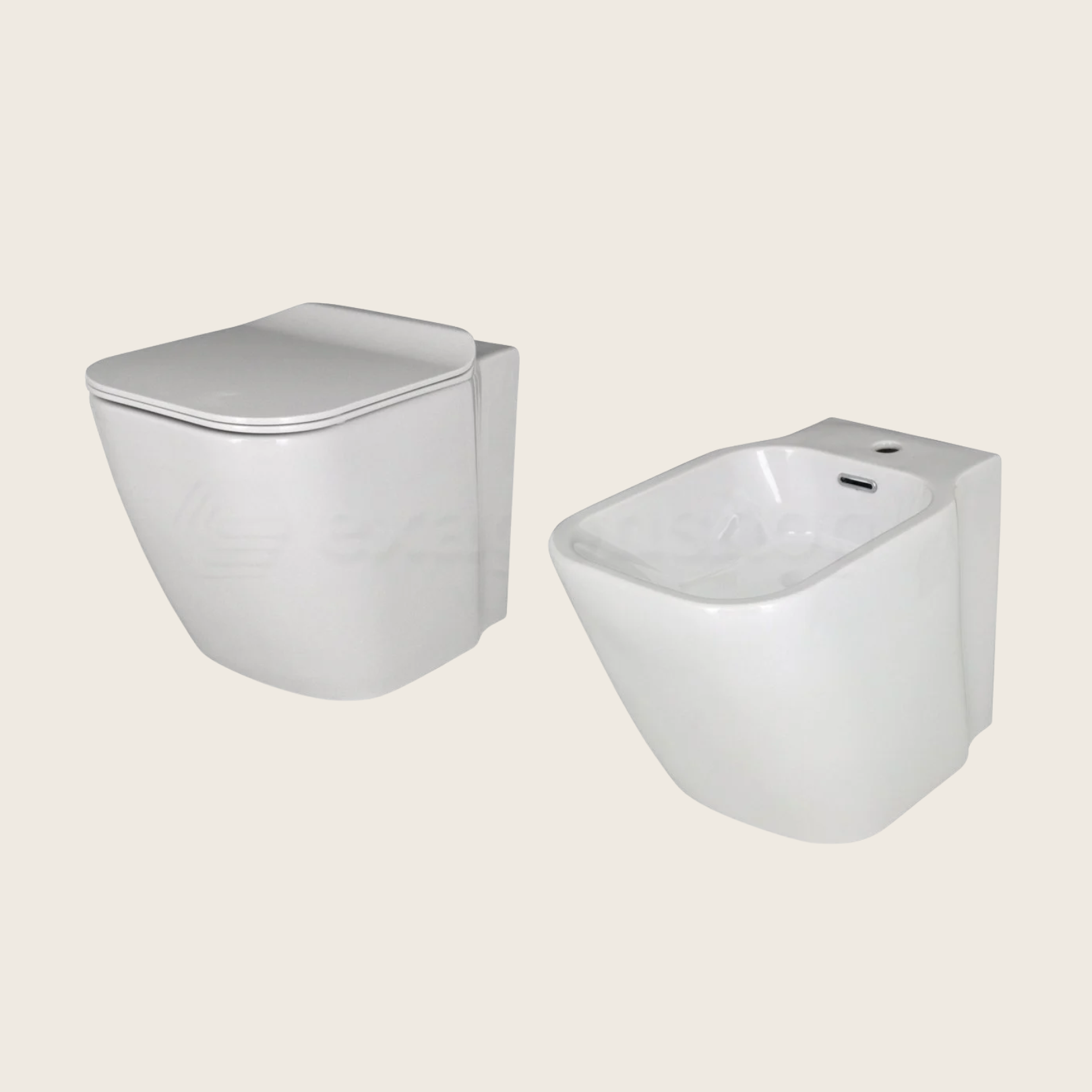 La coppia di sanitari è dotata di un sedile rallentato, che garantisce una chiusura delicata e silenziosa del sedile del water e del bidet, aggiungendo comfort e praticità.