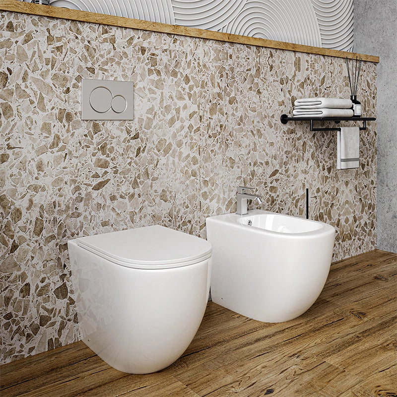 Il bidet a pavimento a filo muro completa la coppia, garantendo un effetto coordinato e armonioso. La coppia sanitari Linea Emme è la scelta ideale per chi cerca qualità, design e innovazione, perfetta sia per nuove realizzazioni sia per progetti di ristrutturazione che puntano su eleganza, praticità e funzionalità.
