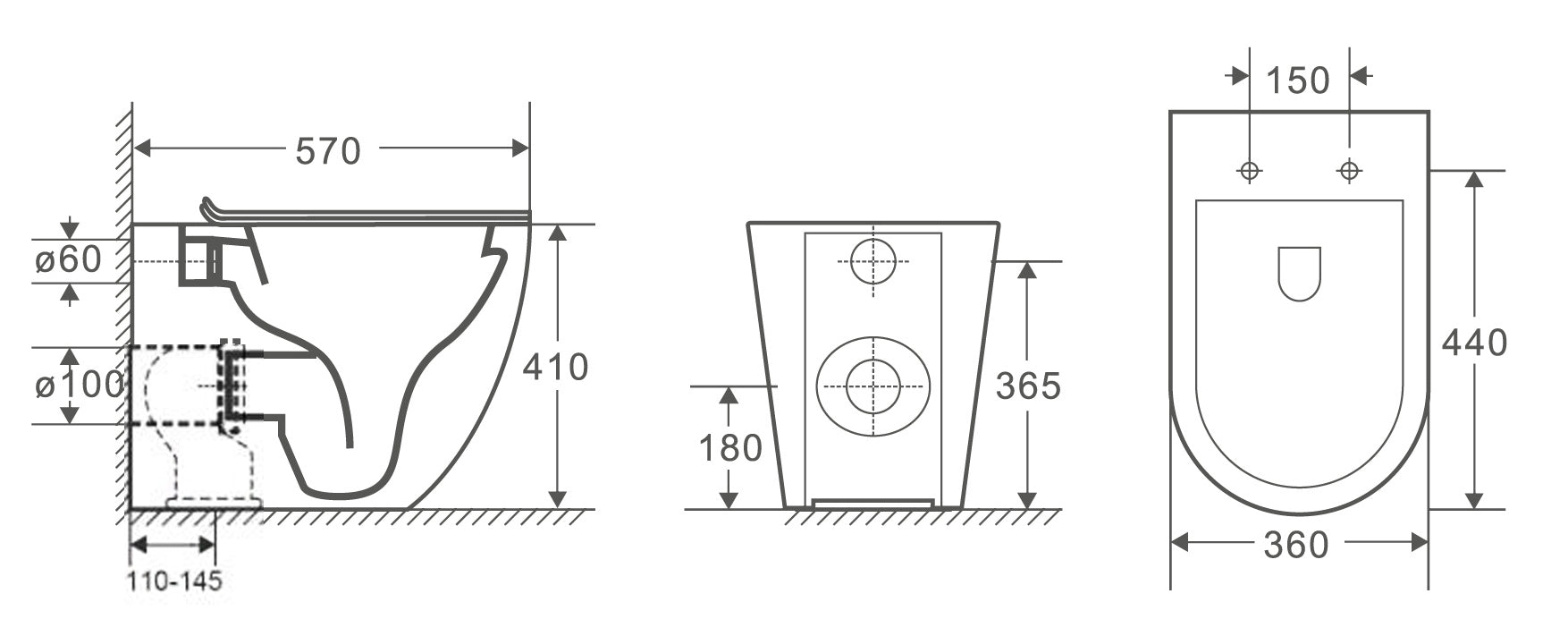 Sanitari filomuro Linea Emme rimless scarico a vortice sedile soft close