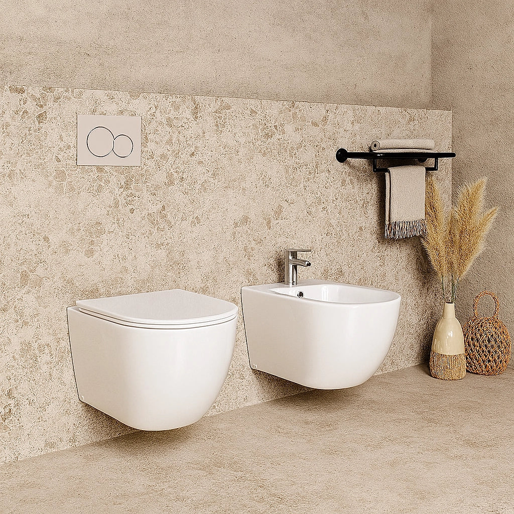 Il bidet sospeso completa la coppia, mantenendo la coerenza stilistica e funzionale. La coppia sanitari Linea Emme è perfetta per chi desidera un ambiente bagno elegante, igienico e all’avanguardia, adatta sia per nuove costruzioni sia per ristrutturazioni di design.