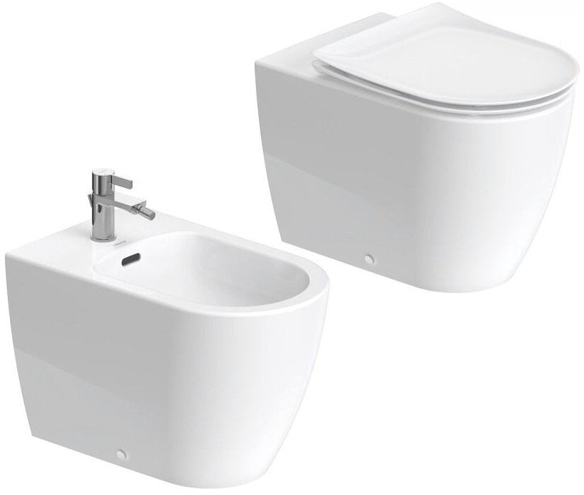 Coppia sanitari filo muro a pavimento senza brida con sedile soft close bianco Soleil Duravit