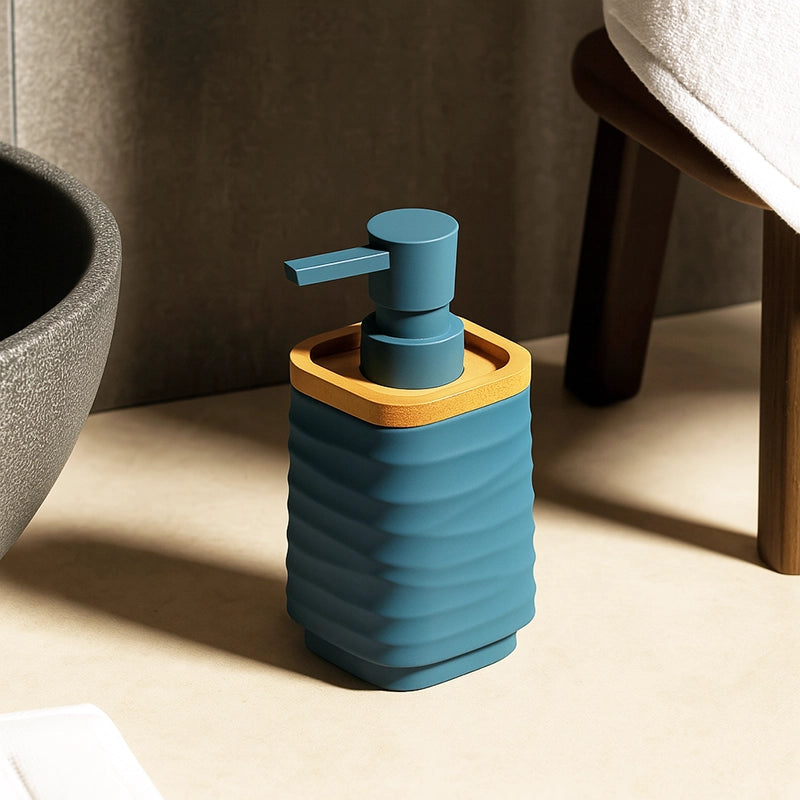 La sua finitura blu pastello dona un tocco di raffinatezza e freschezza, adattandosi armoniosamente a diversi stili di arredamento. Grazie al suo formato compatto e alla pompa ergonomica, consente di dosare il sapone in modo pratico e senza sprechi, rendendo l’uso quotidiano più confortevole.