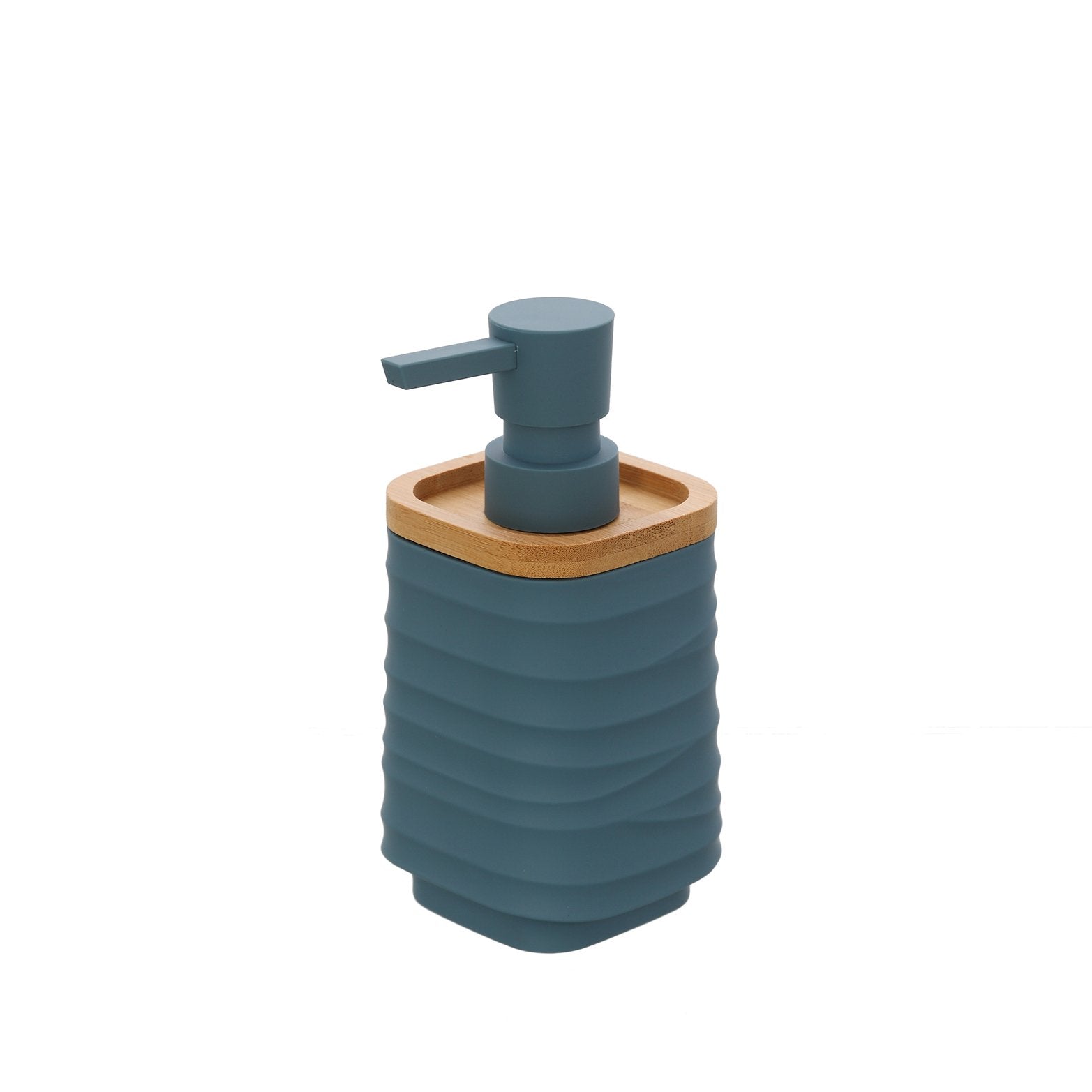 Dispenser sapone liquido in plastica ABS e bamboo blu pastello Alabama