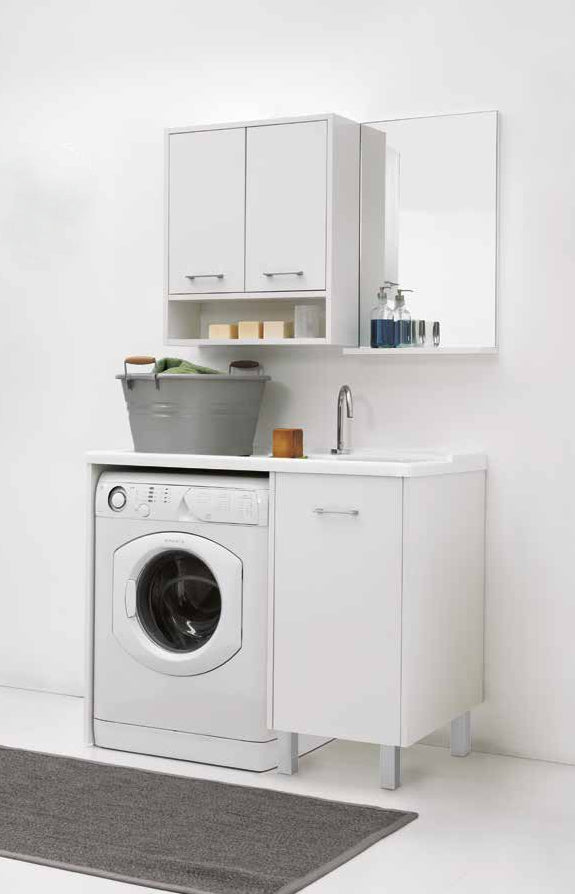 Colavene Domestica Mobile Con Vasca Lavapanni In Abs A Destra 106x50x90 Con Piedini Bianco