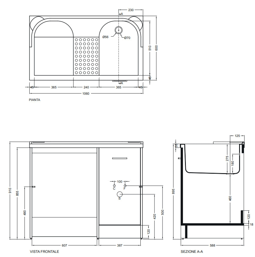 Colavene Domestica Mobile Con Vasca Lavapanni In Abs A Destra 106x60x90 Cm E Alloggio Lavatrice Bianco