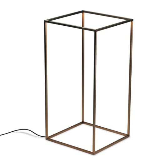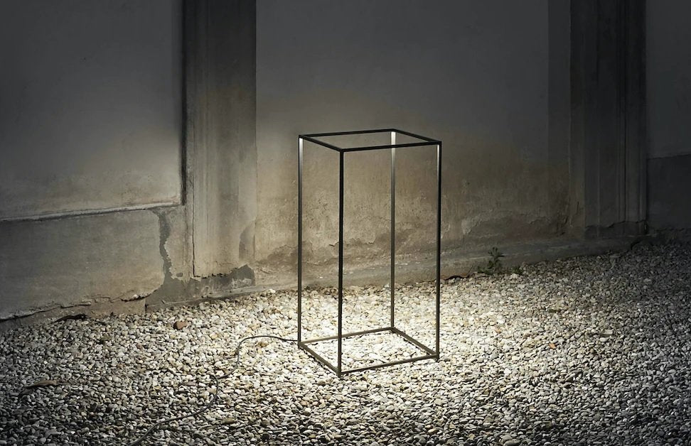 Realizzata in alluminio anodizzato satinato nero, la lampada presenta un design minimale e moderno, caratterizzato dalla presenza di LED sui bordi superiori inglobati negli estrusi e bruniti nella resina. Questo garantisce un livello di protezione IP elevato, che la rende resistente agli agenti atmosferici e adatta all'utilizzo all'aperto.