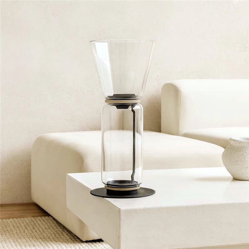 La struttura di questa lampada si compone di moduli di vetro interconnessi che raggiungono con una forma cilindrica e semisferica. La base e gli anelli sono realizzati in alluminio pressofuso, conferendo alla lampada una stabilità e una resistenza superiore.