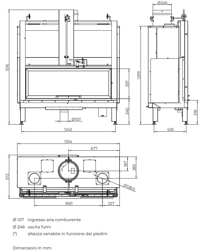 Possibilità di prelevare l’aria comburente dall’esterno: Questa caratteristica permette di migliorare l’efficienza energetica del focolare, prelevando l’aria necessaria alla combustione direttamente dall’esterno, senza compromettere la qualità dell'aria interna.