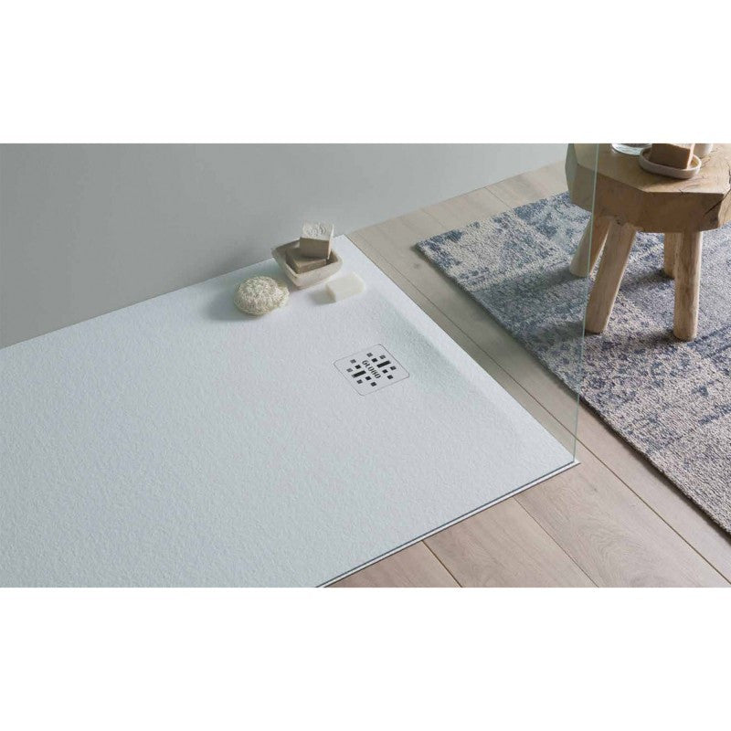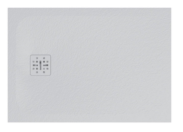 Globo DOCCIAPIETRA Piatto doccia 100x70 reversibile in mineralsolid bianco per Installazione da appoggio o filo pavimento con piletta di scarico e copripiletta in acciaio verniciato inclusa in tinta con il piatto doccia.