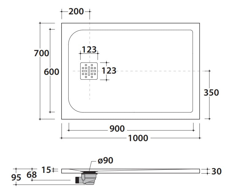 Lo scarico fornito a corredo del piatto in abbinamento alla copertura in acciaio garantisce una efficienza di scarico massima di 24 l/min