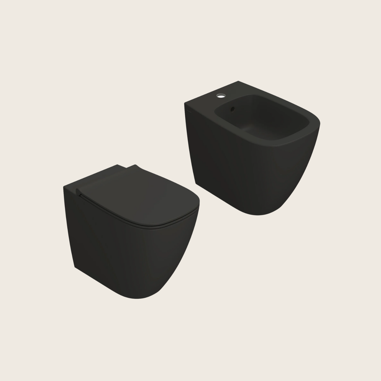 Globo Genesis coppia sanitari a pavimento vaso senza brida con sedile rallentato e bidet a filo parete smoke