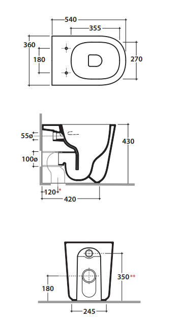Il vaso ha dimensioni di 54.36 x 43 cm ed è fornito completo di fissaggioghost®, un sistema di fissaggio invisibile che consente di installare il prodotto in modo rapido e facile, senza compromettere l'estetica del bagno.