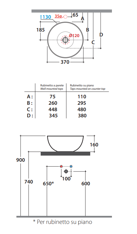 Il lavabo Globo T-Edge è progettato per essere montato su un piano o un mobiletto da bagno e offre una dimensione di 37 cm di diametro, il che lo rende ideale per bagni di piccole dimensioni o per spazi ridotti.
