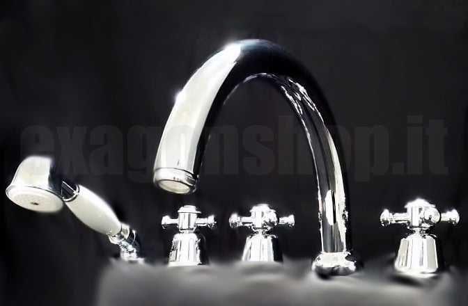 Dotato di 5 fori, questo gruppo offre una versatilità eccezionale e una gamma completa di funzionalità per la tua vasca e doccia. Questo include il miscelatore principale per il controllo della temperatura e del flusso dell'acqua, il deviatore per il passaggio tra il riempimento della vasca e l'utilizzo della doccetta, e il supporto per il fissaggio del flessibile.