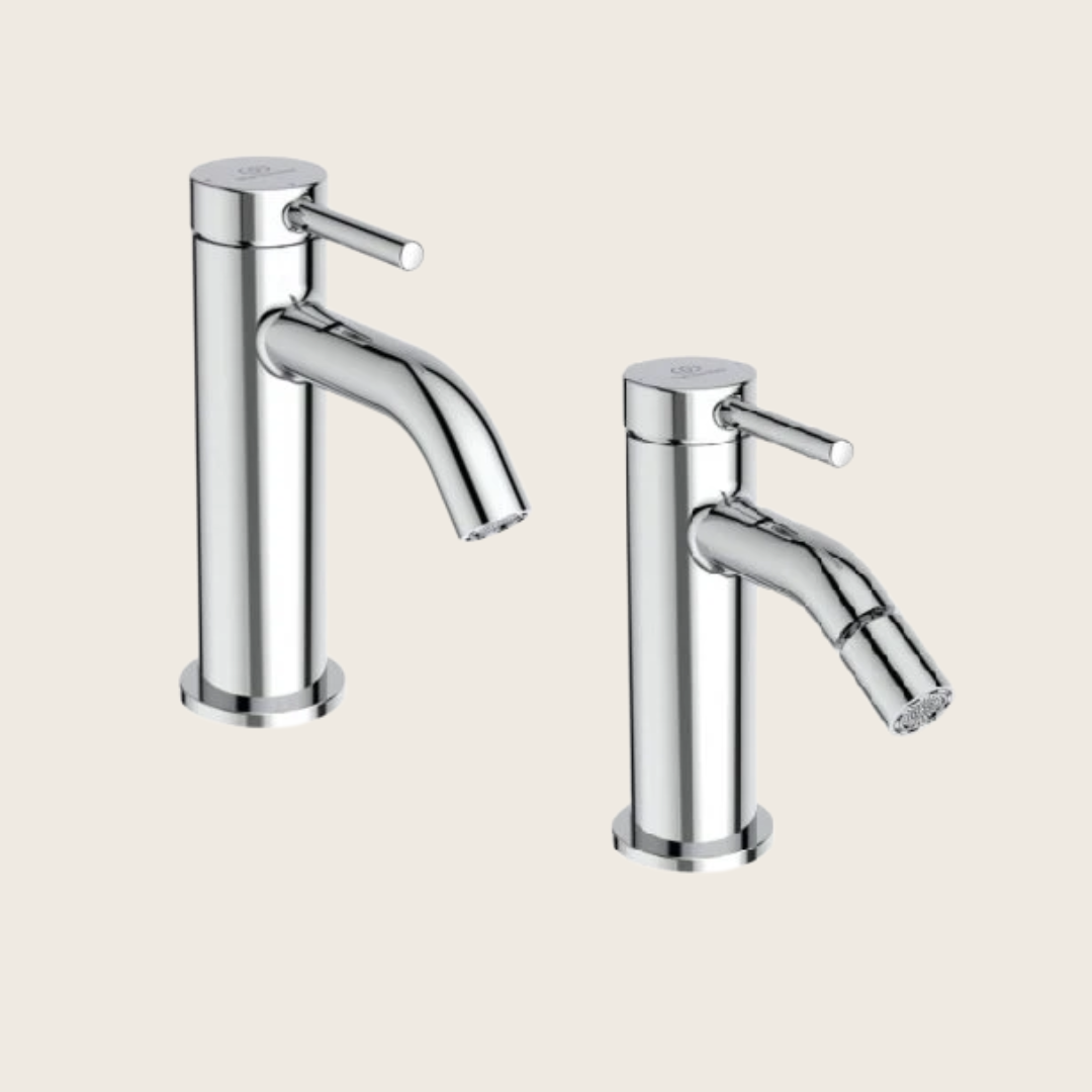 Con la coppia di miscelatori monocomando per lavabo e bidet con scarico click clack di Ceraline Ideal Standard, puoi trasformare il tuo bagno in uno spazio elegante e funzionale, godendo di prestazioni affidabili e di un design moderno che si adatta perfettamente al tuo stile di vita.