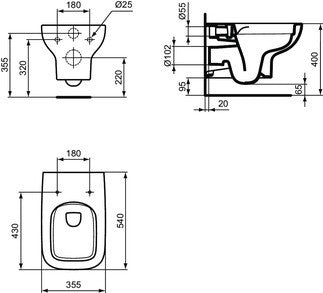 T452301 Vaso sospeso RimLS+ con scarico a parete con sedile a chiusura rallentata T453101/T481301. Per il fissaggio a parete è necessario utilizzare il sostegno metallico J117867 da ordinare separatamente. Dotato della tecnologica di scarico RimLS+ che garantisce un'ottimale pulizia del bacino ad ogni risciacquo e una facile pulizia grazie all'assenza di recessi. Certificato per lo scarico a 4/2,6 litri.Â