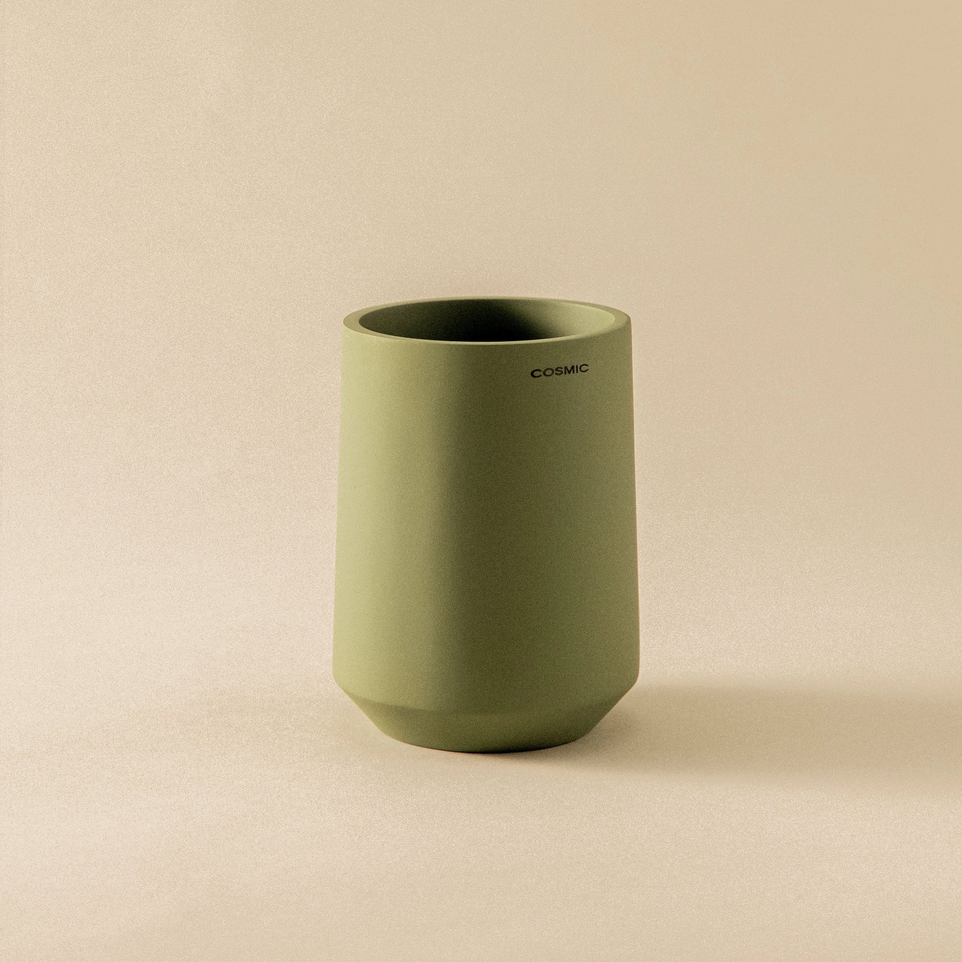 Il porta spazzolini da appoggio INDUSTRIAS COSMIC Saona unisce estetica e funzionalità in un complemento indispensabile per l’ambiente bagno. Con le sue dimensioni di cm 8,5x8,5x11,5, si adatta perfettamente a ogni tipo di lavabo, anche in spazi ridotti. Il colore verde oliva, caldo e neutro, si inserisce con armonia negli arredi contemporanei, donando un tocco di eleganza discreta e naturale.