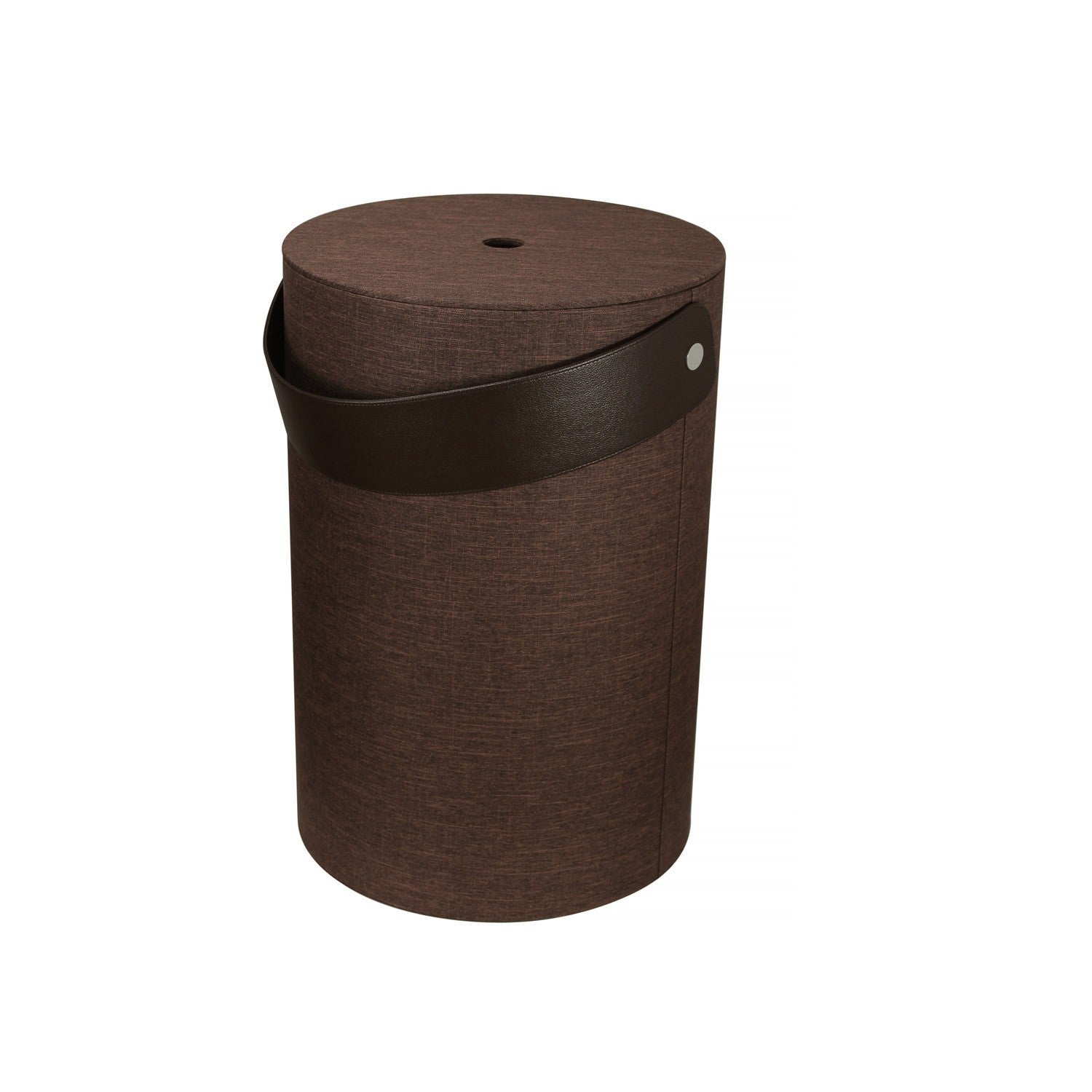 Cesto porta biancheria realizzato con rivestimento in poliestere marrone ad imitazione lino con trattamento idrorepellente. Struttura in MDFÂ e sacco porta biancheria interno rimovibile.