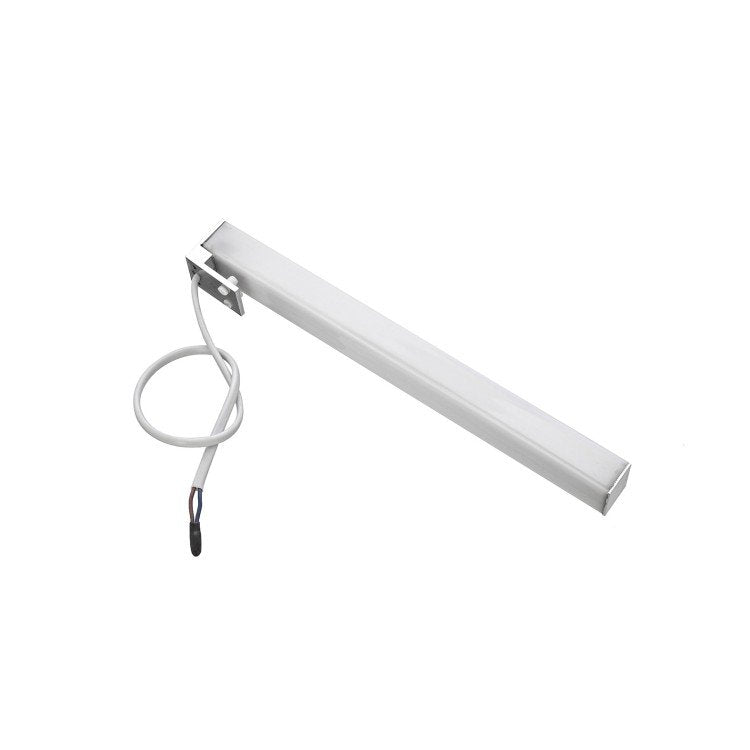Il sistema di fissaggio permette un’installazione rapida e sicura sopra lo specchio, offrendo stabilità e un’illuminazione ottimale. Il LED integrato assicura un basso consumo energetico e una lunga durata nel tempo, senza necessità di sostituzione della lampadina.