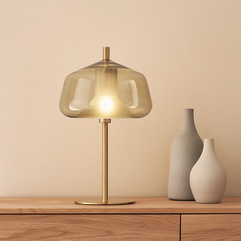 - Dimensioni: Con una altezza di 34 cm e un diametro del vetro di 20 cm, la lampada è ideale per tavoli, scrivanie o comodini, offrendo un'illuminazione d'accento raffinata.