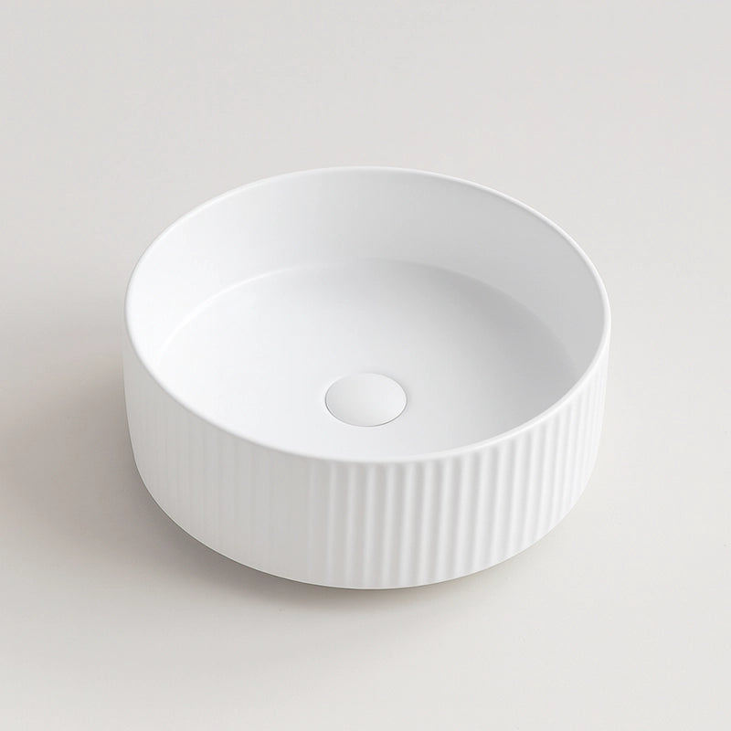 Lavabo 36 cm Roma cannettato tondo da appoggio bianco opaco