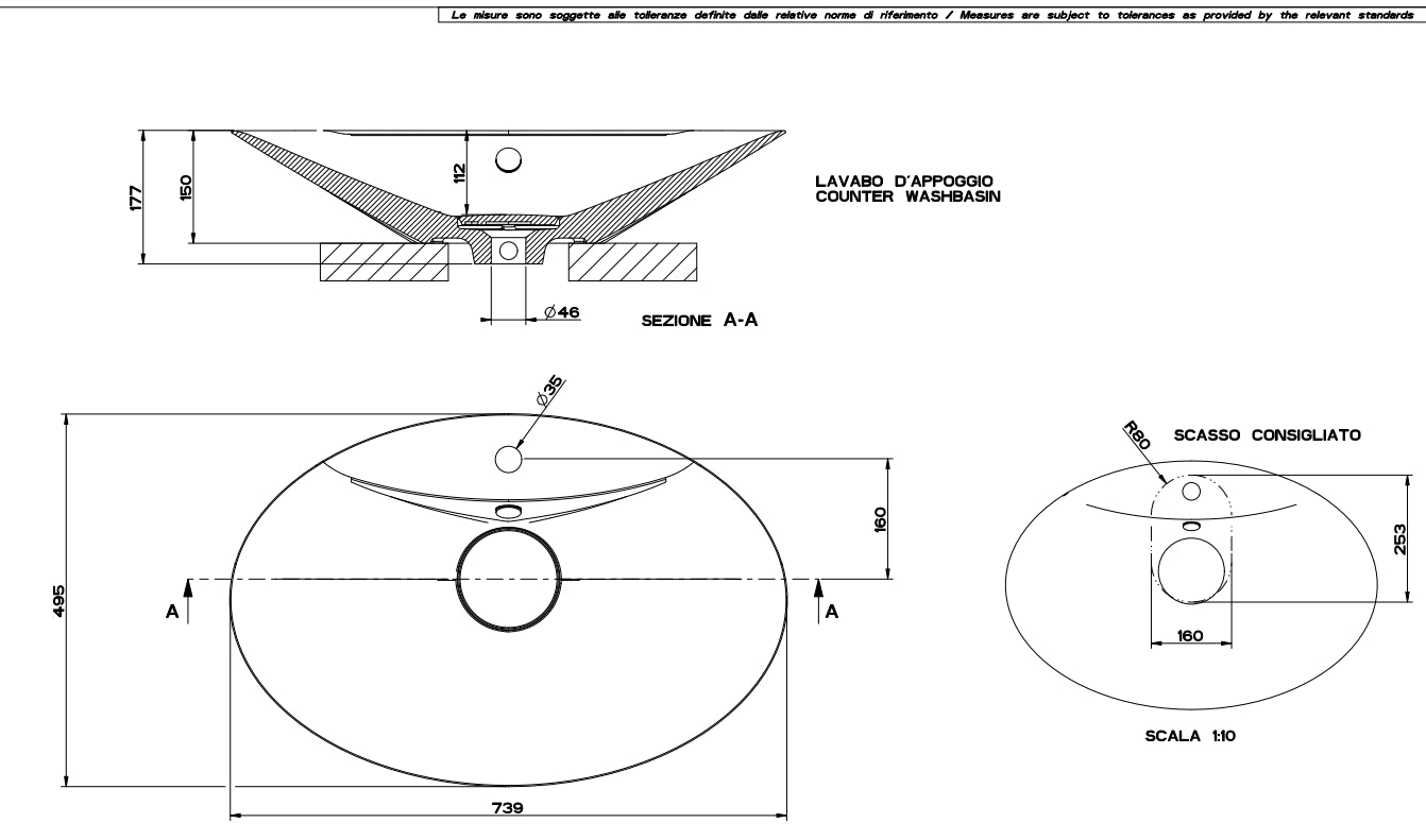 Con le sue ampie dimensioni, il lavabo offre un ampio spazio d'uso senza compromettere lo stile. La forma conica aggiunge un tocco di modernità e leggerezza visiva, mentre l'altezza di 15 centimetri assicura un utilizzo confortevole ed ergonomico.