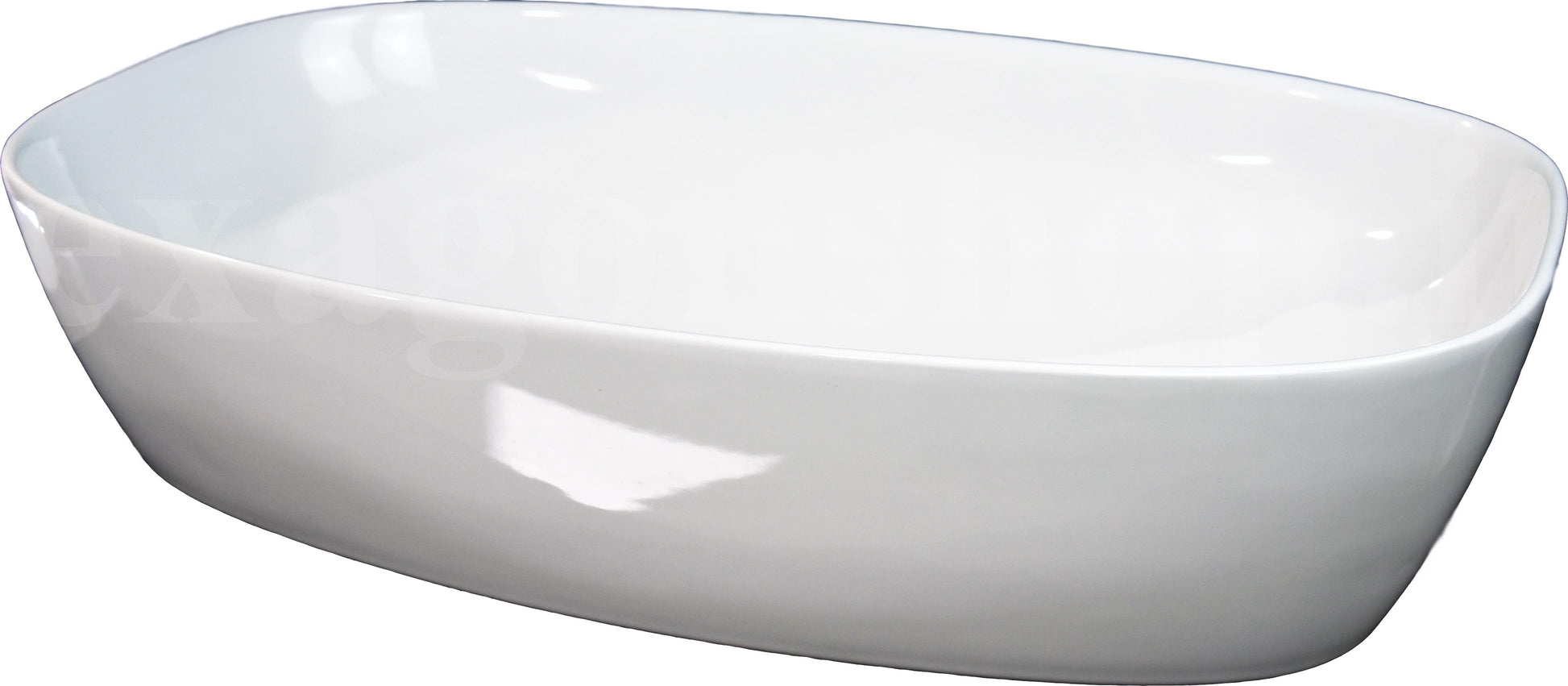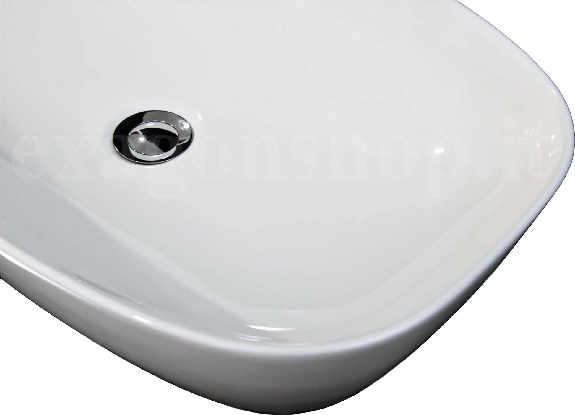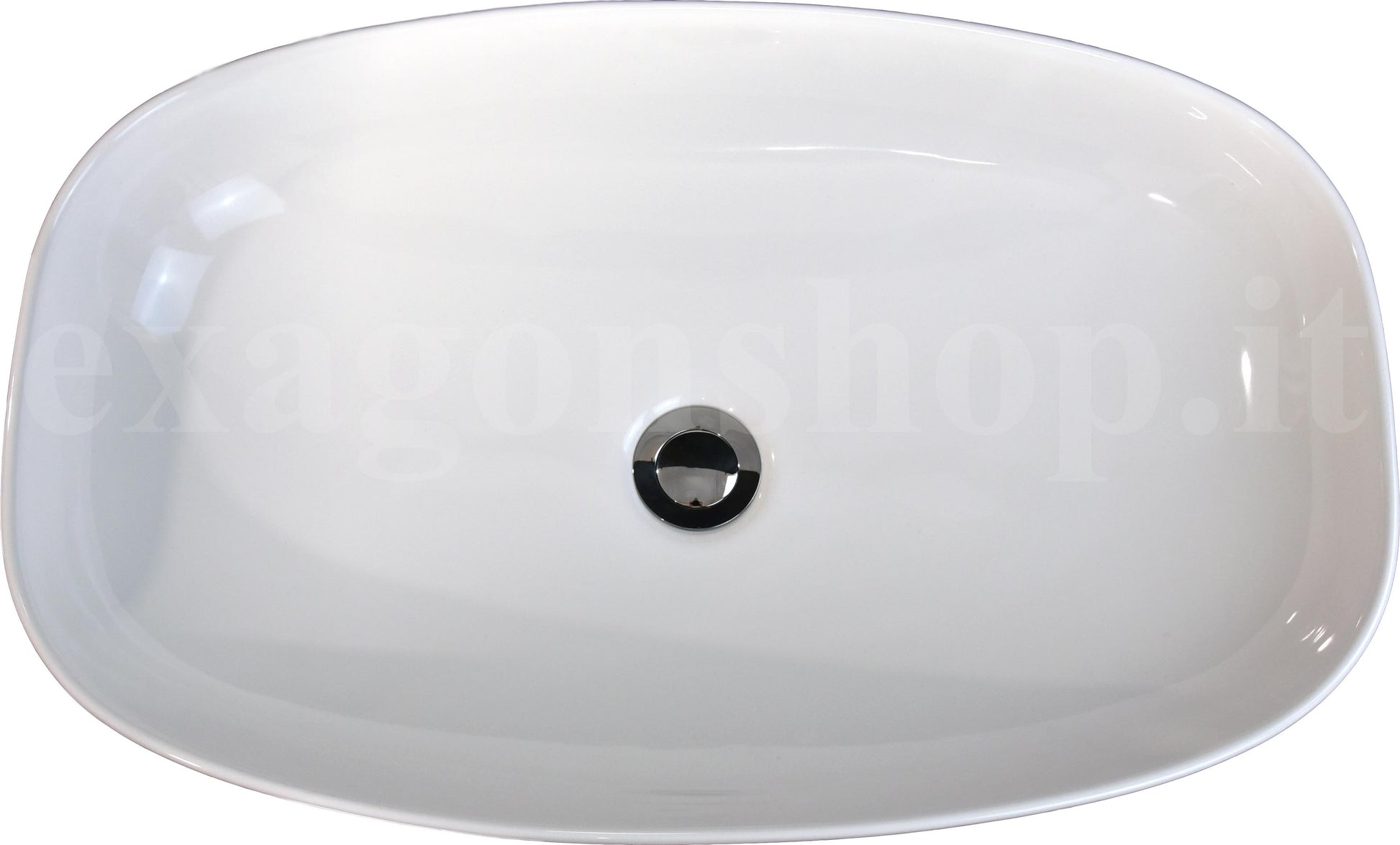 Lavabo 60x39 da appoggio in ceramica per top mobile bagno Bianco Lucido