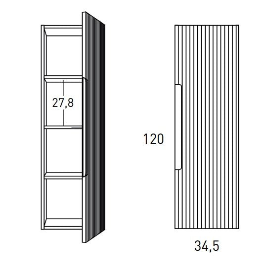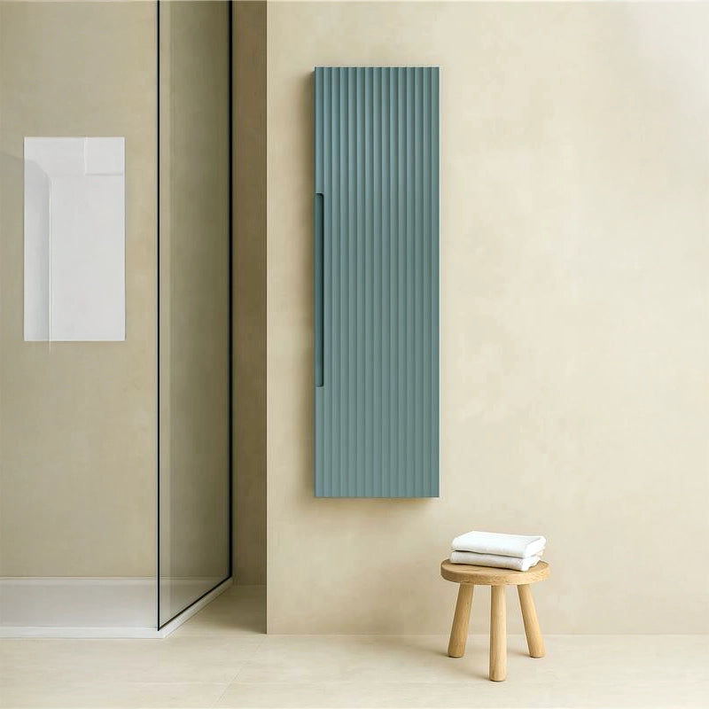 Con un'altezza di 120 cm, una larghezza di 34 cm e una profondità di 25 cm, offre molto spazio per l'organizzazione dei tuoi articoli da bagno. La maniglia incassata a gola è discreta e facile da usare, mentre il colore sky blue opaco aggiunge un tocco di colore alla tua stanza da bagno.