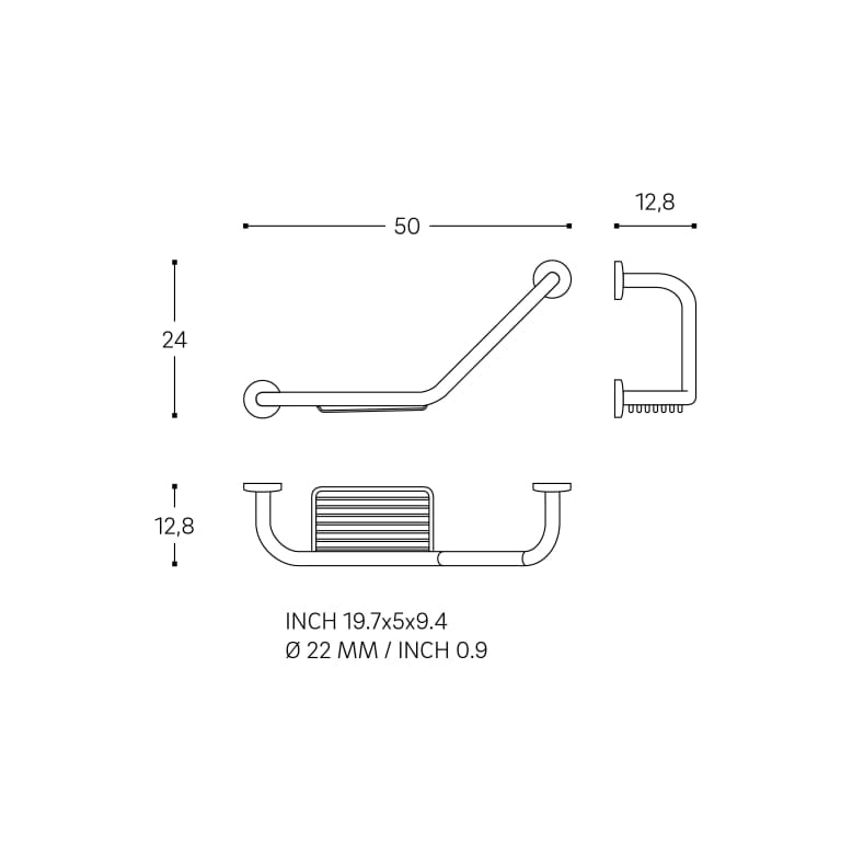 La maniglia destra di supporto vasca con portasapone della serie Architect di Cosmic, codice 2900126, è un elegante accessorio progettato per migliorare la funzionalità e il comfort del tuo bagno. Con una lunghezza di 50 cm, questa maniglia offre un solido supporto per l'entrata e l'uscita dalla vasca, aumentando la sicurezza e la comodità durante l'uso.