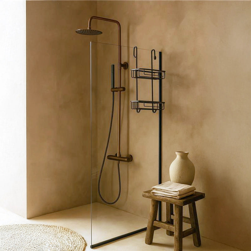 La colonna doccia termostatica Serie Melin si distingue per la sua raffinata finitura in oro rosa spazzolato, ideale per ambienti bagno moderni ed esclusivi. Ogni dettaglio è studiato per unire estetica e funzionalità, con linee pulite e materiali di pregio che elevano l’esperienza quotidiana della doccia.